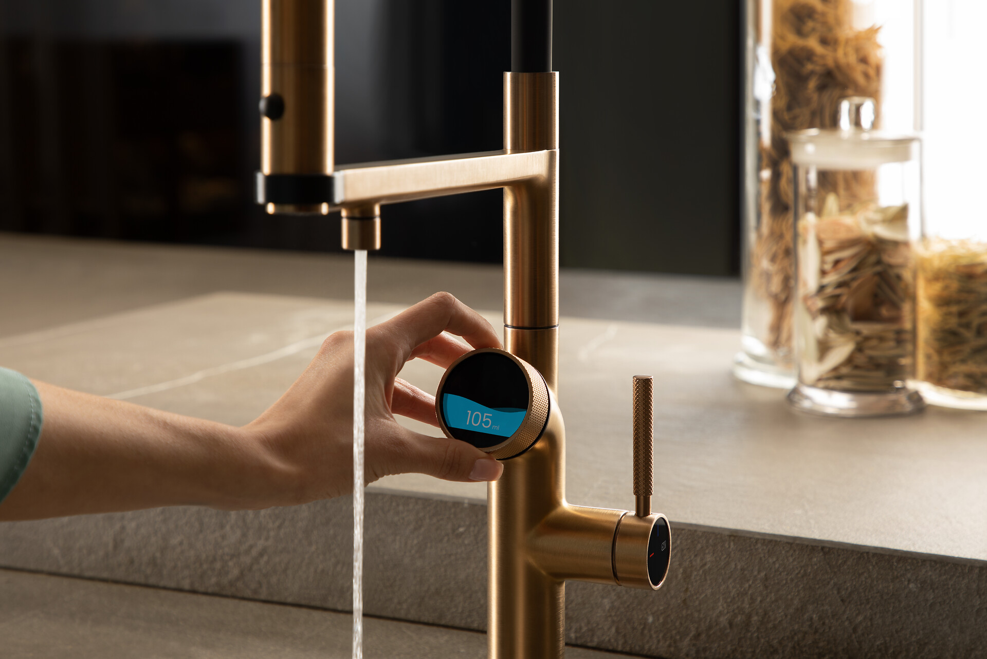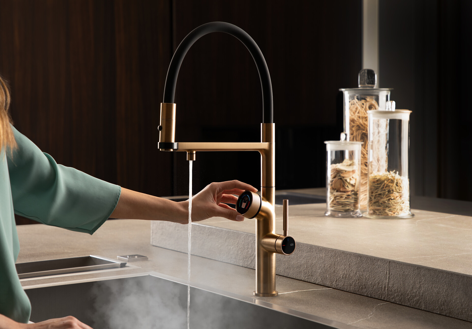 Ein Dosier- und Filtersystem, das zum Protagonisten des Küchenraums wird und die Art und Weise, wie Sie mit Wasser interagieren, revolutioniert: Vita Gessi integriert einzigartige Hi-Tech-Innovationen auf dem Markt und vereint Technologie mit der Ästhetik der Einfachheit, die aus der interaktiven Benutzeroberfläche von Smart-Geräten stammt.